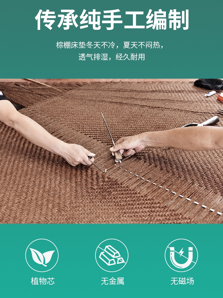 棕绷床垫儿童山棕垫老式棕绷子实木偏硬床垫天然手工无胶1.8 护脊
