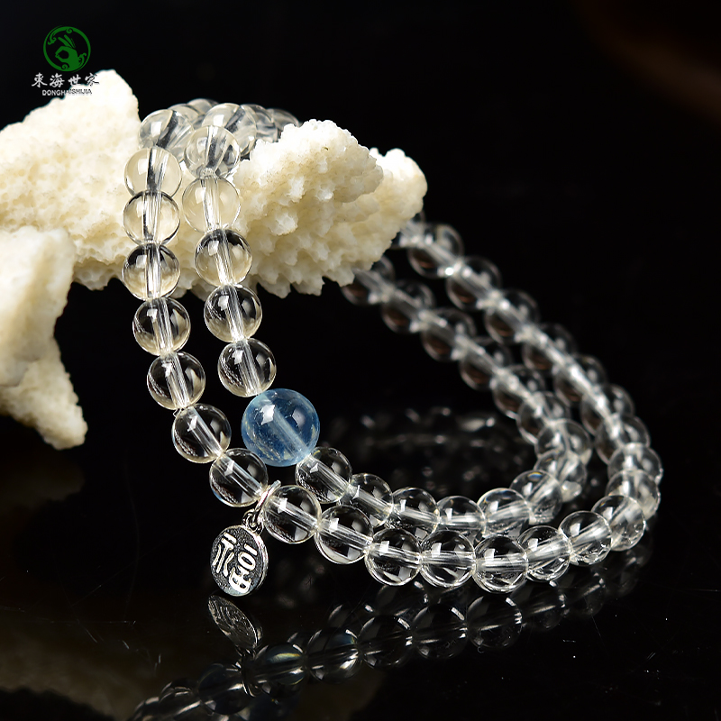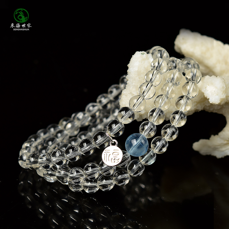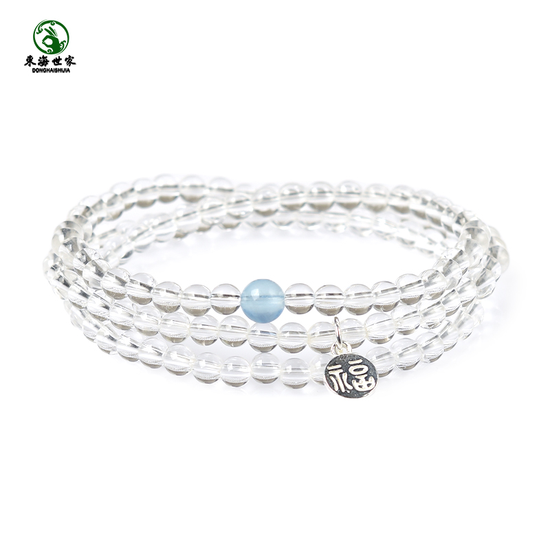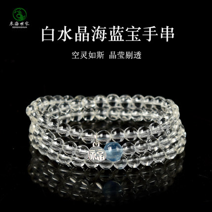 白水晶手串女东海玛瑙玉髓翡翠宝玉石三双多圈单散珠子海蓝宝手链