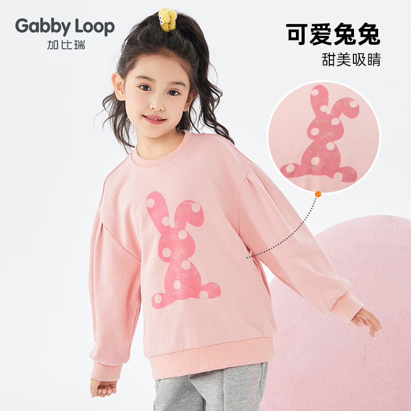 加比瑞童装 春秋季新品 女童简约休闲舒适套头卫衣中大童上衣
