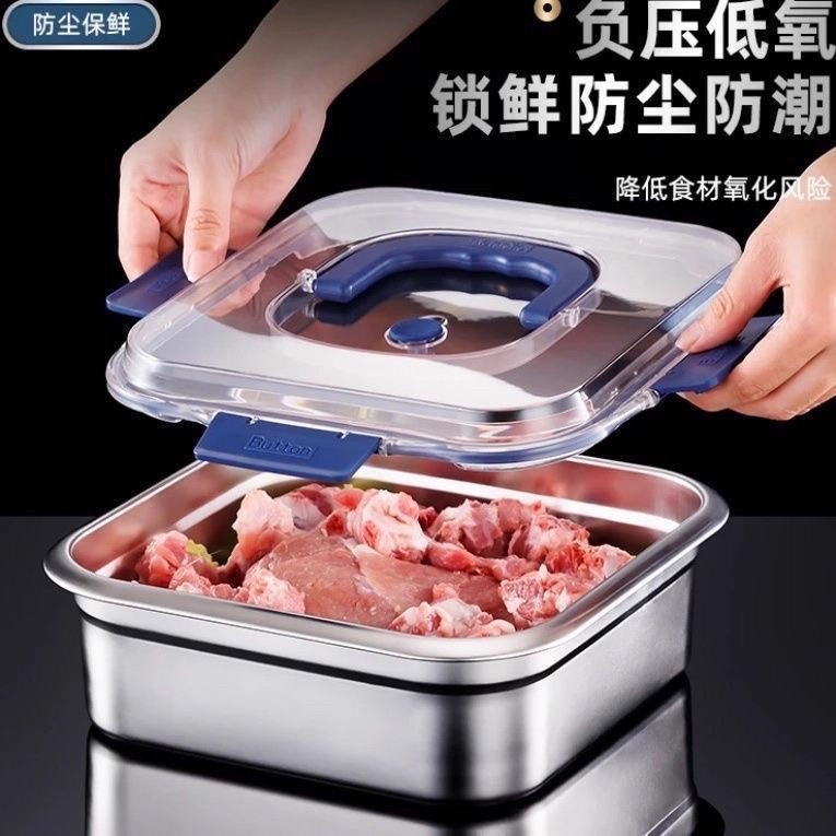 加厚不锈钢保鲜盒食品级密封带盖便当盒大容量手提冰箱收纳盒