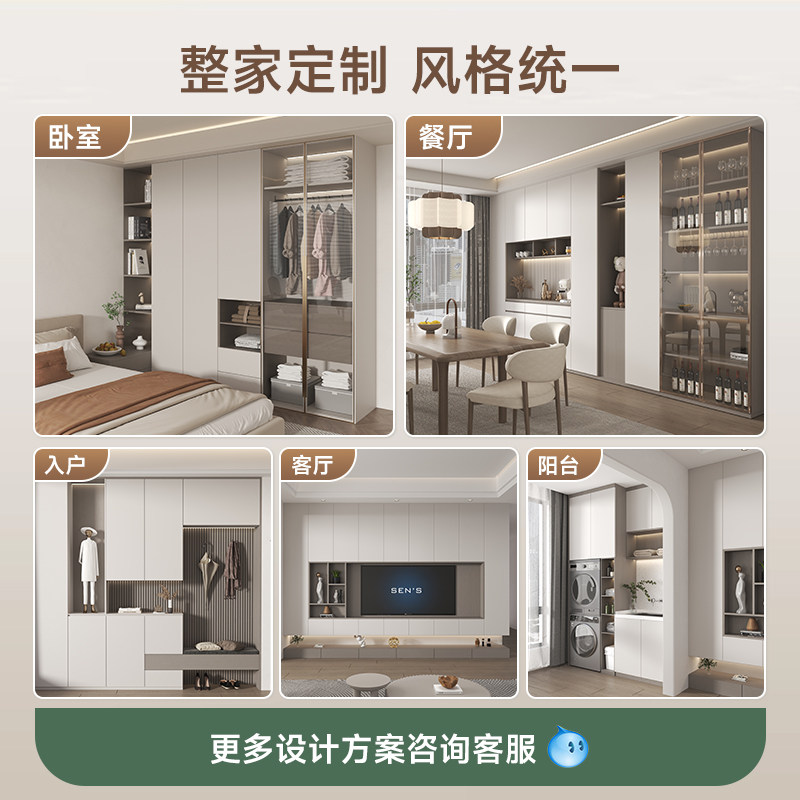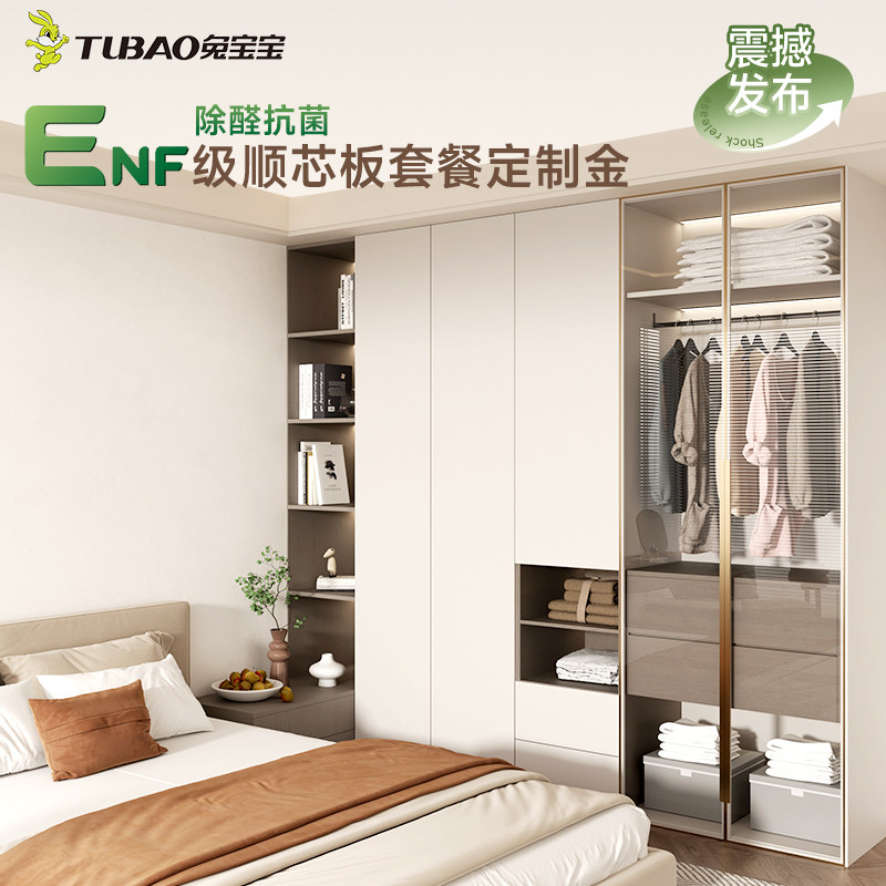 兔宝宝全屋定制ENF顺芯板玻璃柜门定制卧室客厅衣帽间入户柜韩式