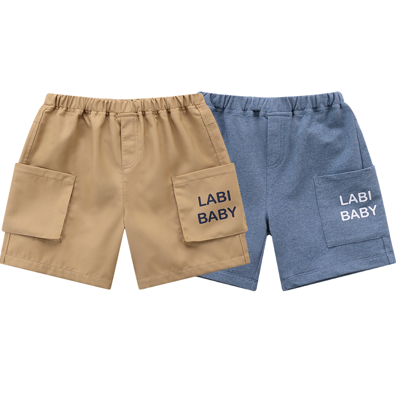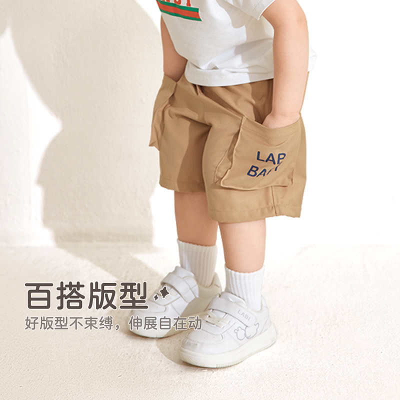 拉比童装短裤2025新款夏季男童休闲裤子百搭工装裤英文运动五分裤