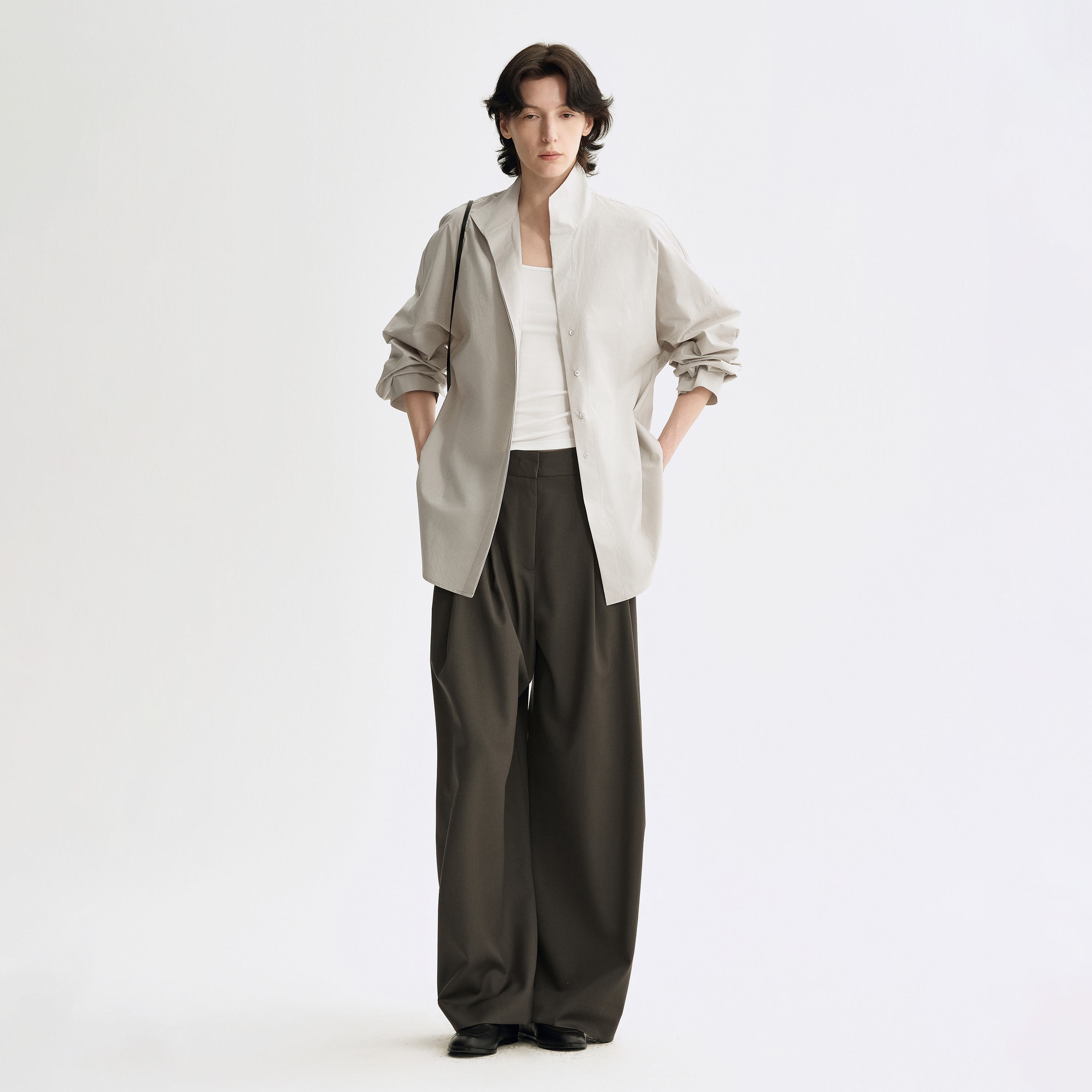 白弓2025春季新款质感宽松阔腿西装裤女100%羊毛休闲长裤52779