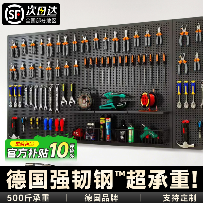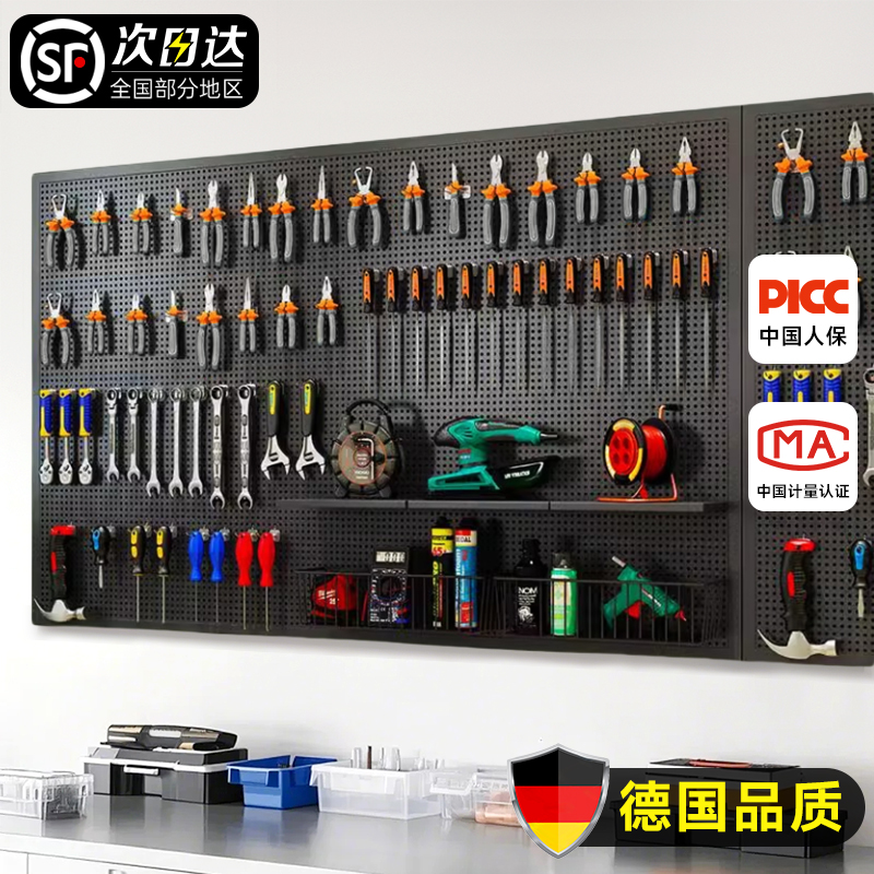德国工具墙洞洞板多用挂板收纳架墙上置物架冲孔板非不锈钢整理架