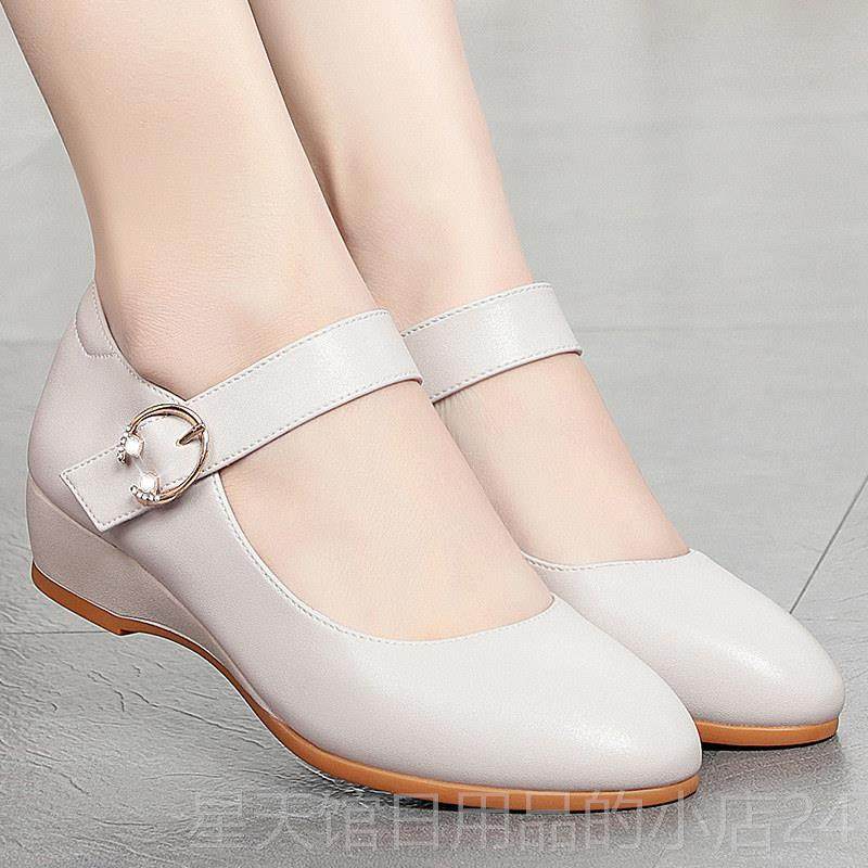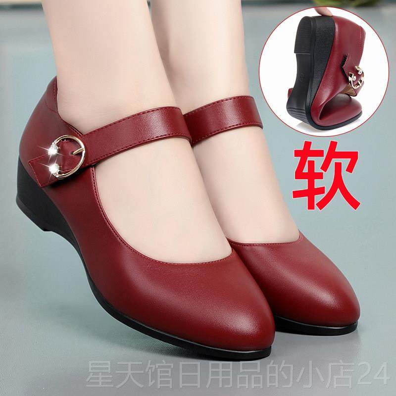 正品妈妈鞋单鞋新款真皮软女春秋款年女鞋舒中适坡跟中老年跟低底