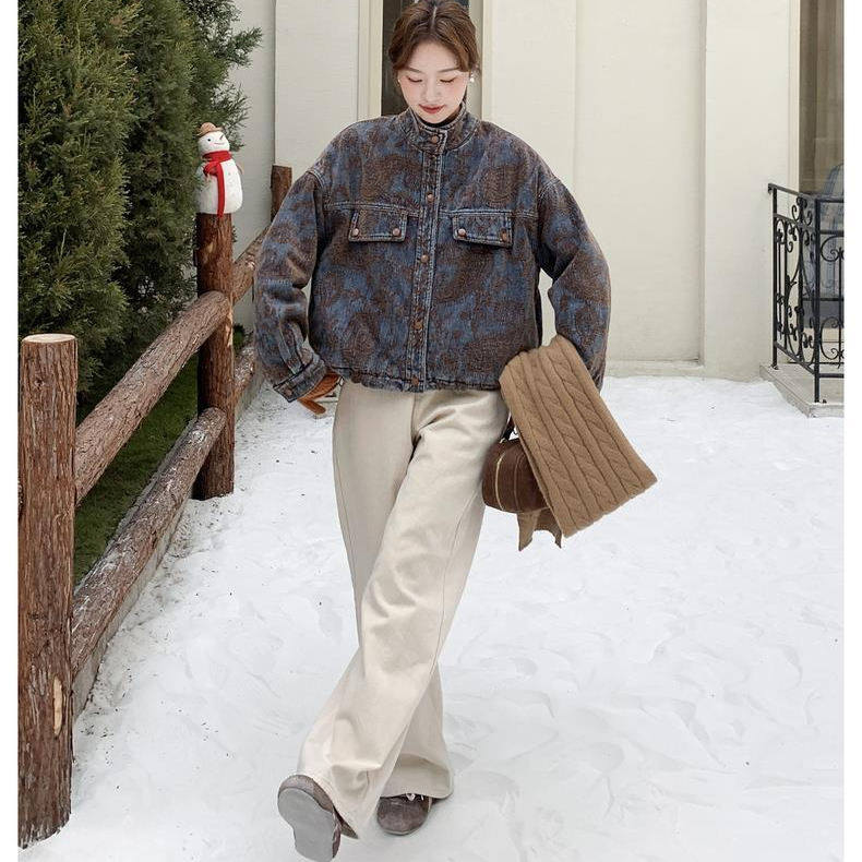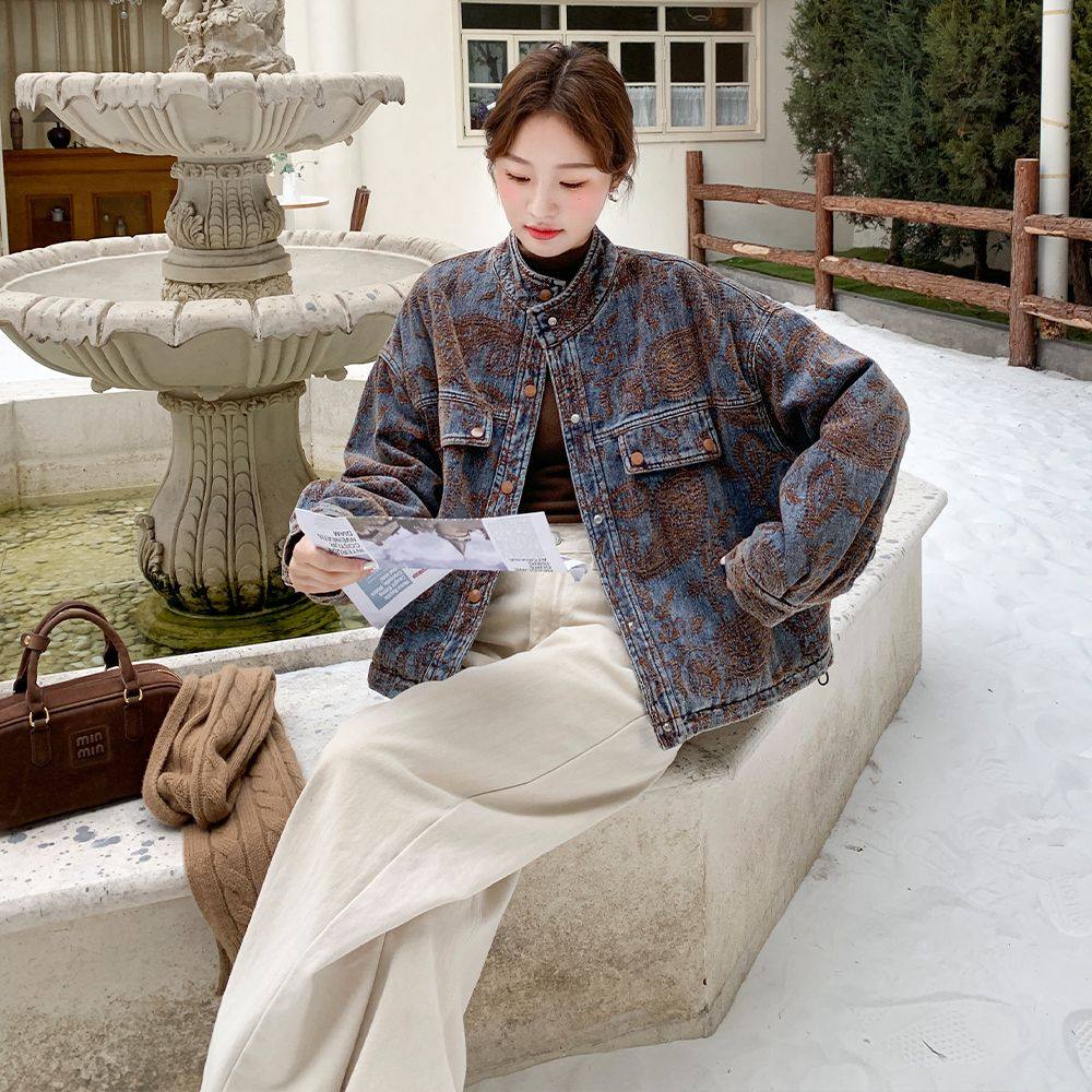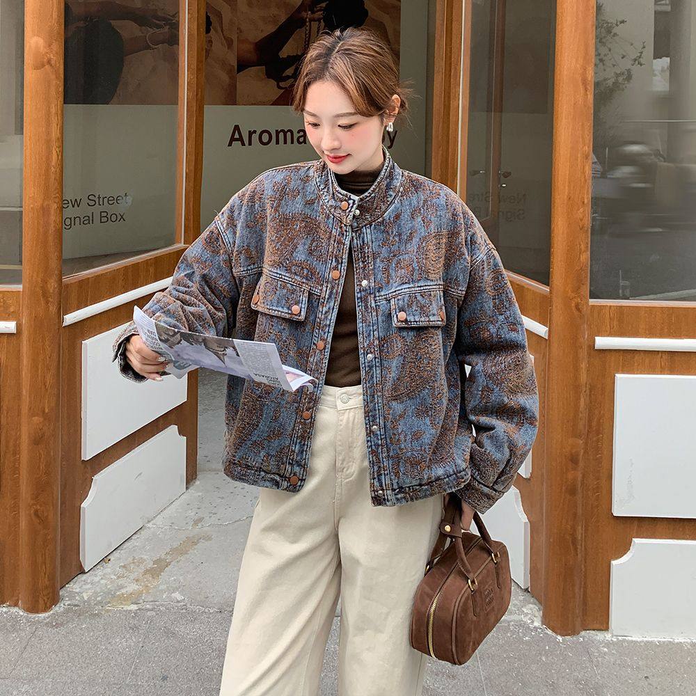 独特设计感刺绣牛仔外套女冬季超好看高级小众加绒加厚派克棉服
