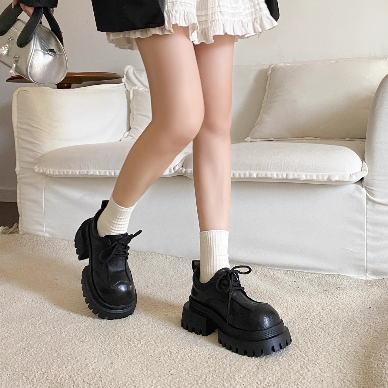 英伦风厚底乐福鞋女2025秋季新款气质大头系带小皮鞋复古百搭单鞋