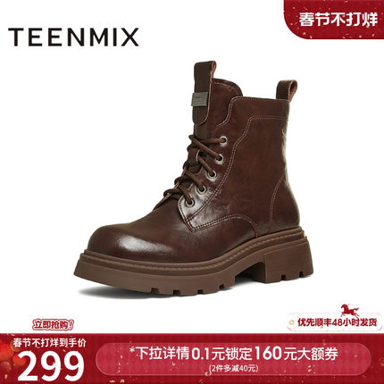 天美意复古厚底增高加绒马丁靴女休闲短靴皮靴冬新款BK062DD4