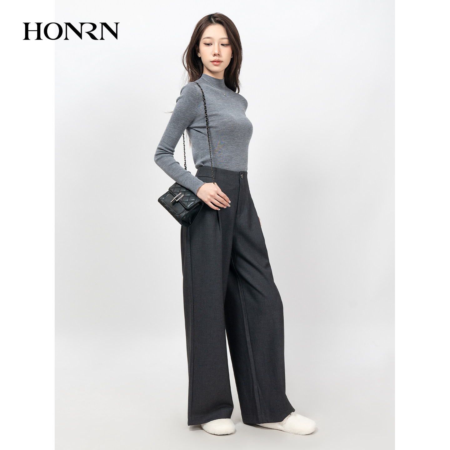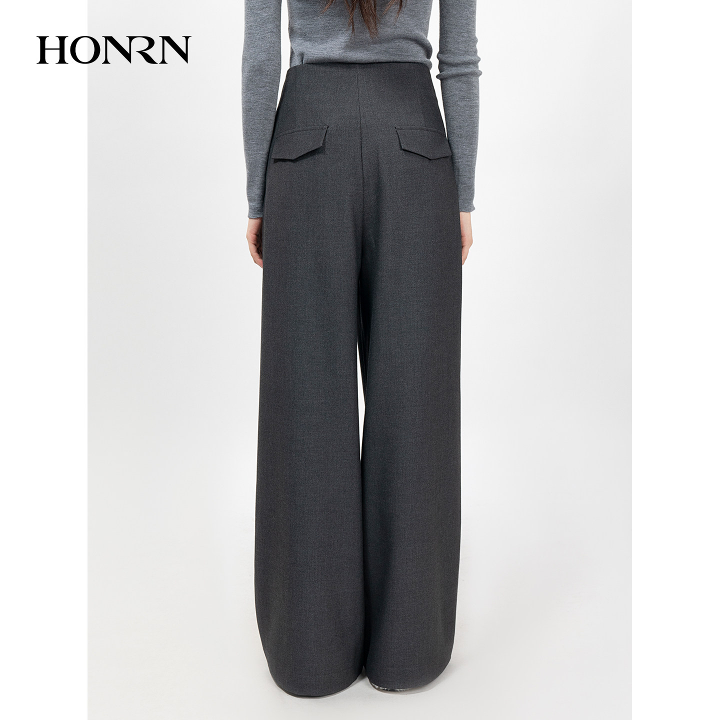 HONRN/红人宽松灰色阔腿休闲裤直筒垂感西装裤女秋冬HK59OK073