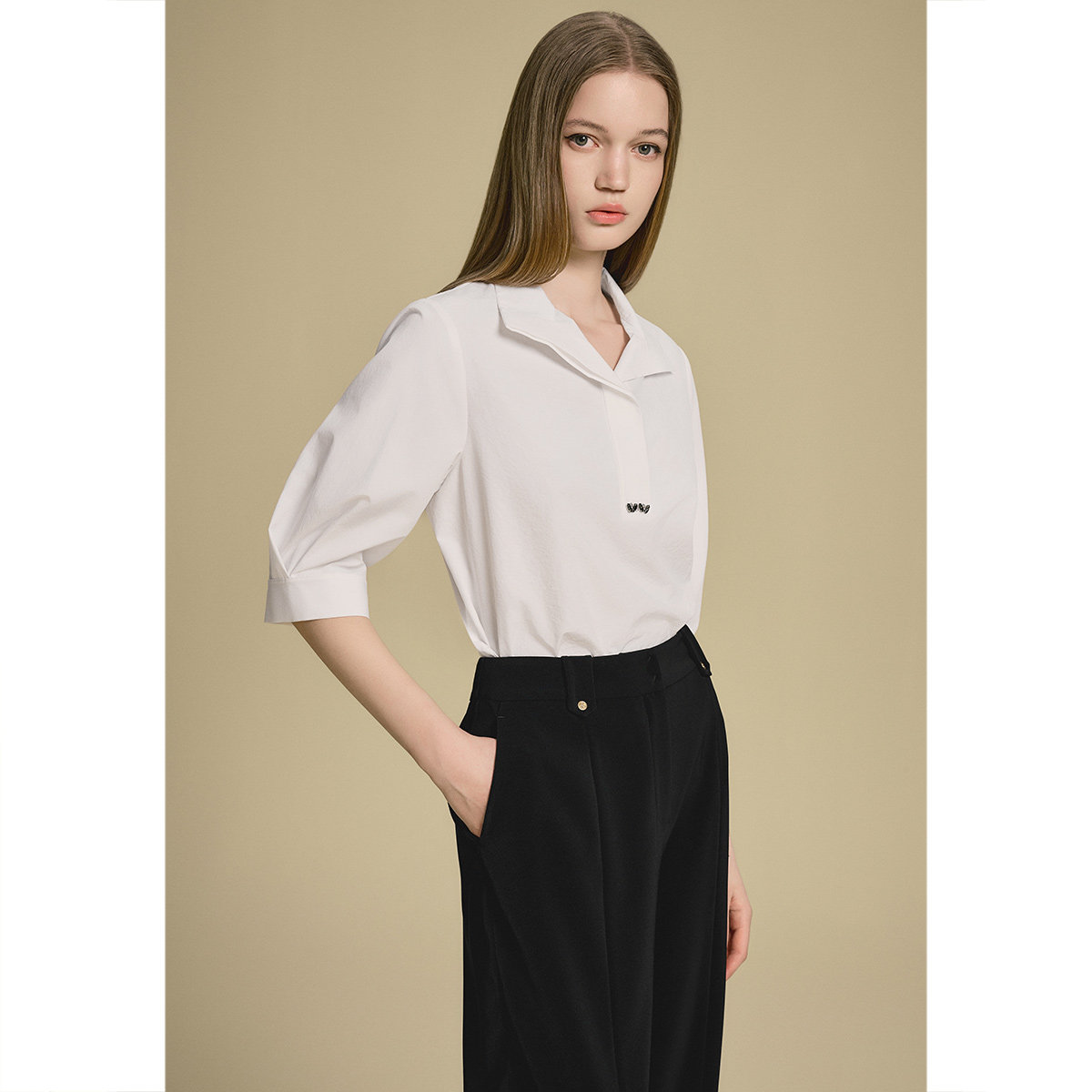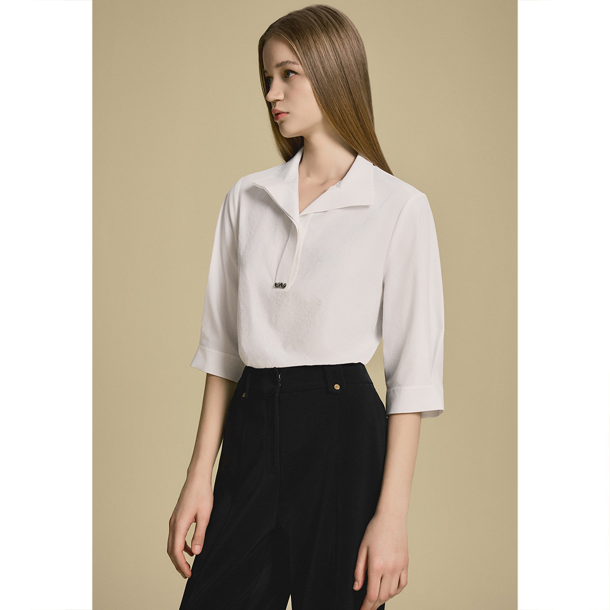 诗篇专选设计感宽松白色衬衫女休闲百搭V领上衣2025夏款