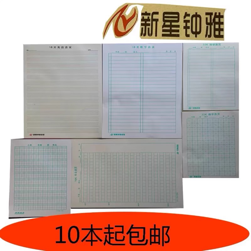 新星钟雅青岛市小学生活页32k练字纸16k数学活页纸横格米字格包邮