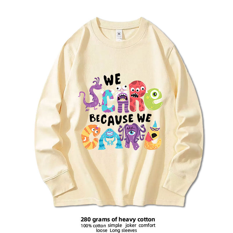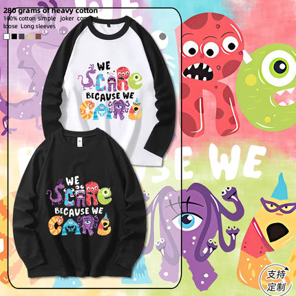 怪物家族怪兽大学动漫联名小怪兽纯棉长袖T恤学生男女美式休闲潮