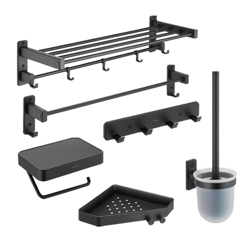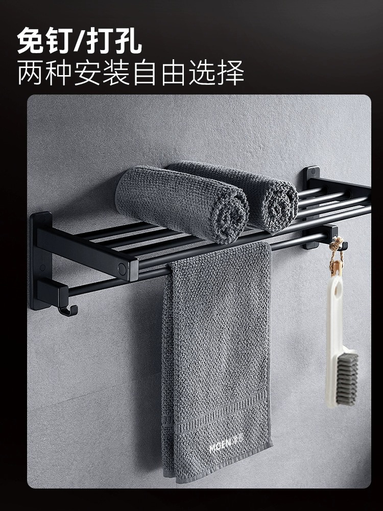 摩恩免打孔太空铝浴室五金挂件家用卫生间毛巾架浴巾架