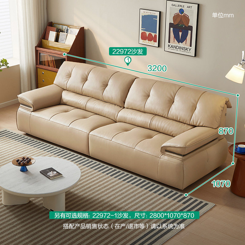 全友家居门店同款 时尚风 22972 直排一字型真头层黄牛皮艺沙发
