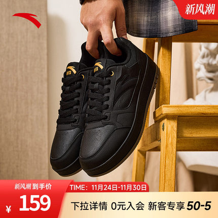 安踏元年2休闲鞋男鞋2025冬季厚底百搭运动鞋官方正品黑色板鞋男