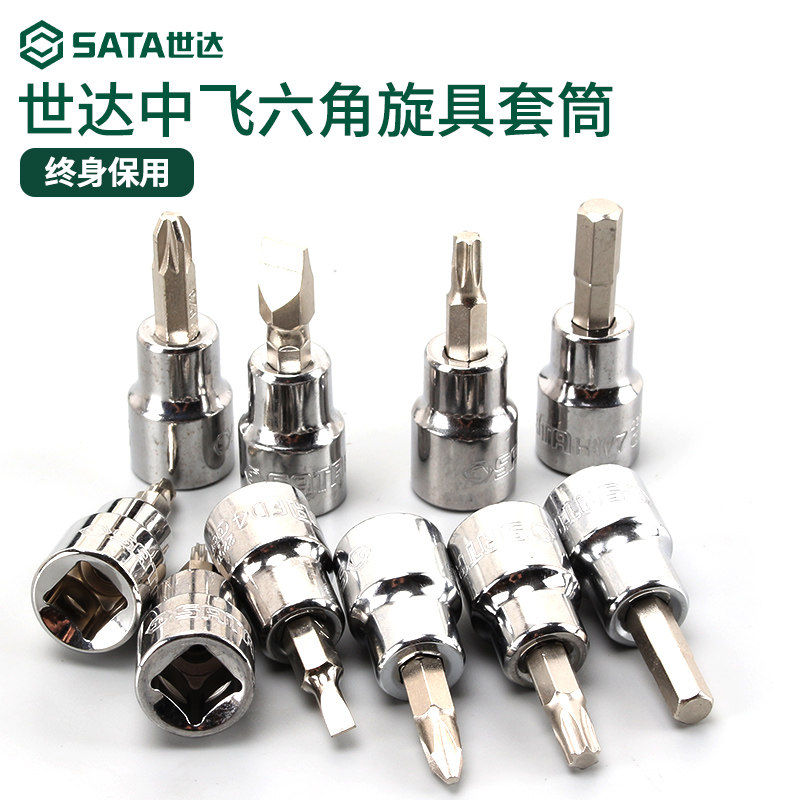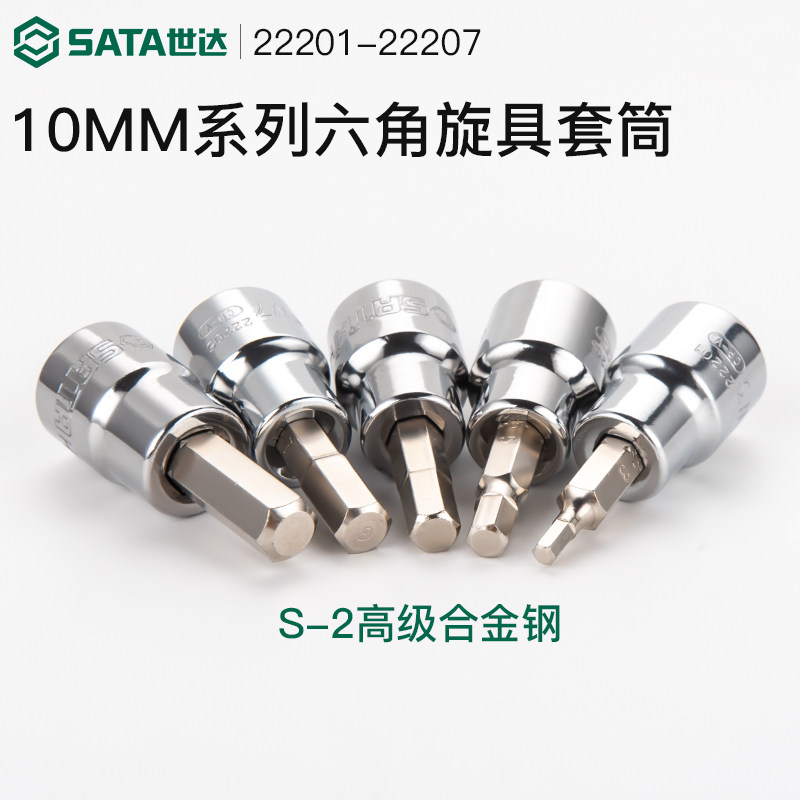 世达中飞内六角一字十字旋具套筒10mm棘轮扳手内六方套管花键批头