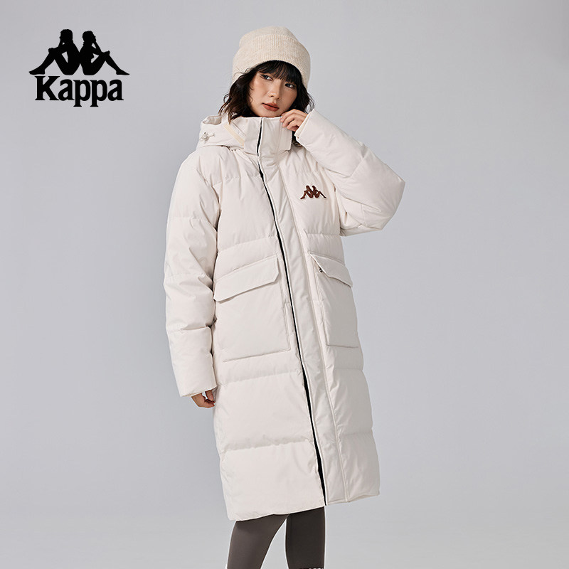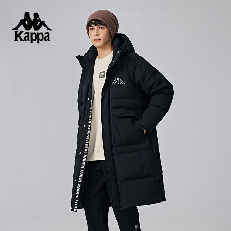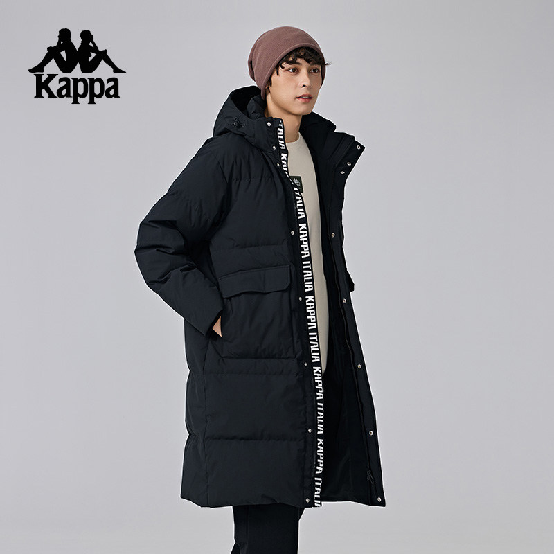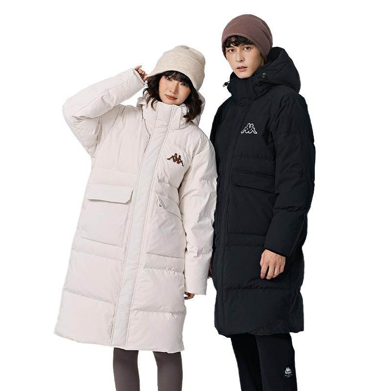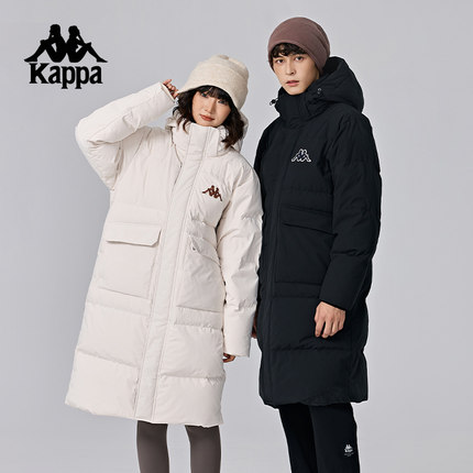 Kappa卡帕背靠背保暖羽绒服女款2024新款冬连帽长款防寒服外套男