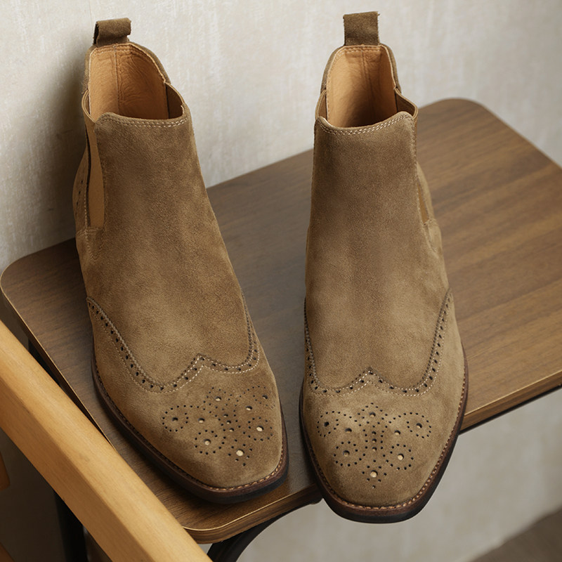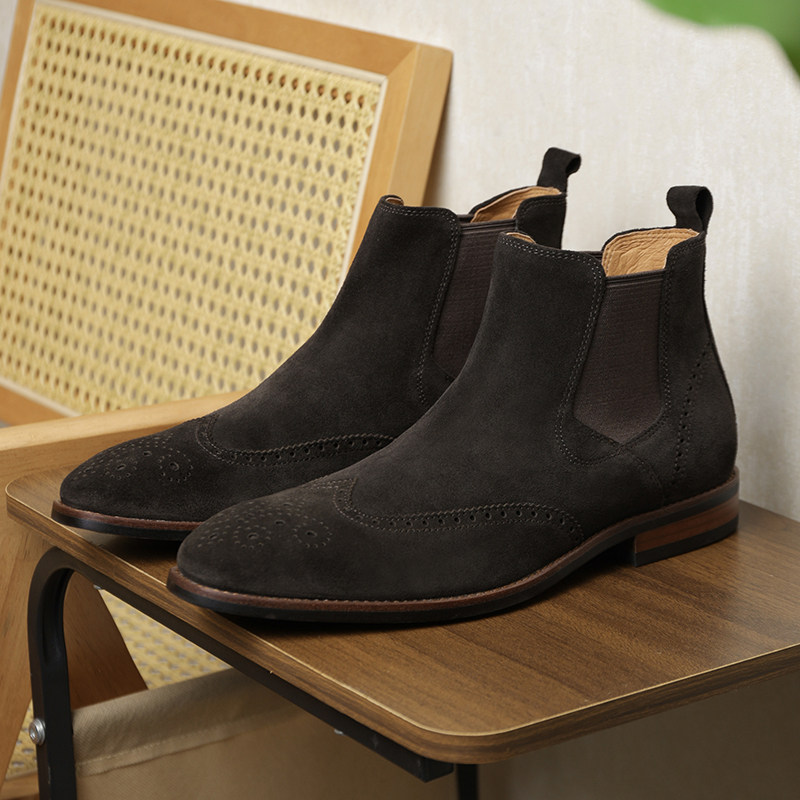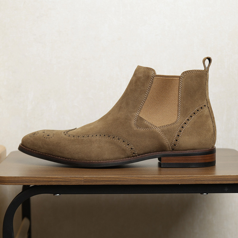 布洛克雕花英伦真皮复古方头高帮休闲皮鞋反绒皮透气潮流切尔西靴