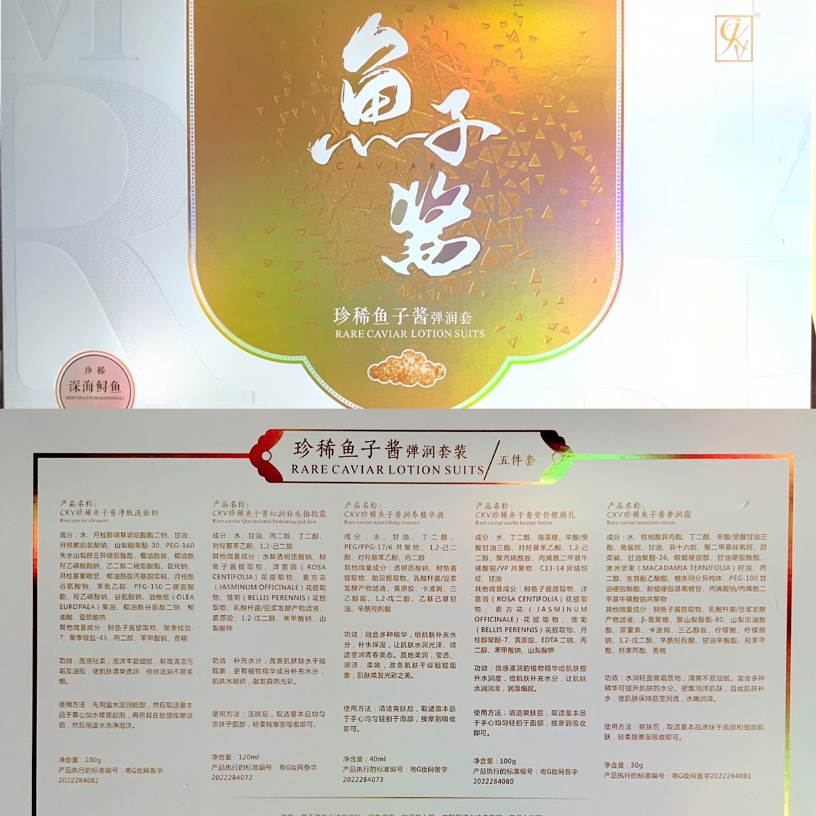 专柜珍稀鱼子酱弹润套盒五合一加修护霜六件套护肤品正品送面膜