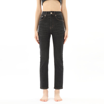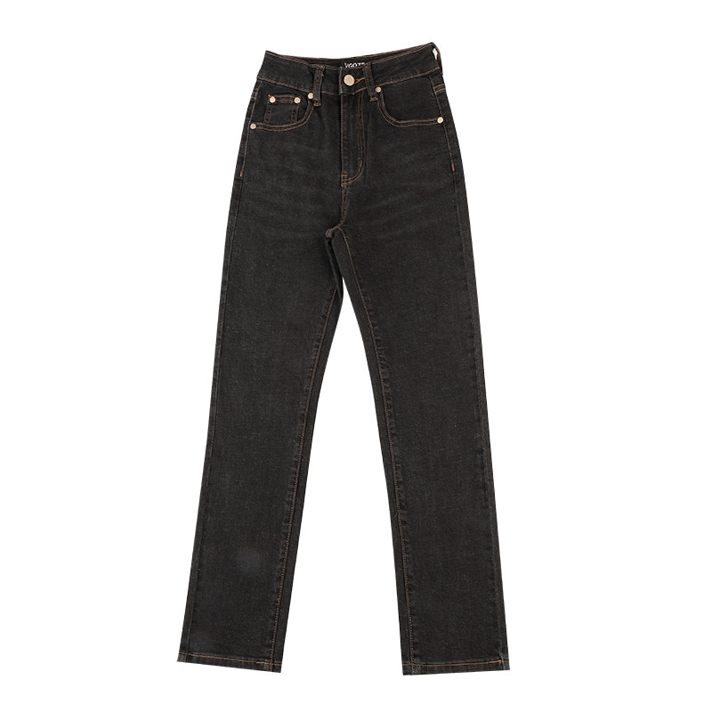 GPOD VGOZE薄款烟灰黑色法式烟管高腰小直筒牛仔裤女2025新款0
