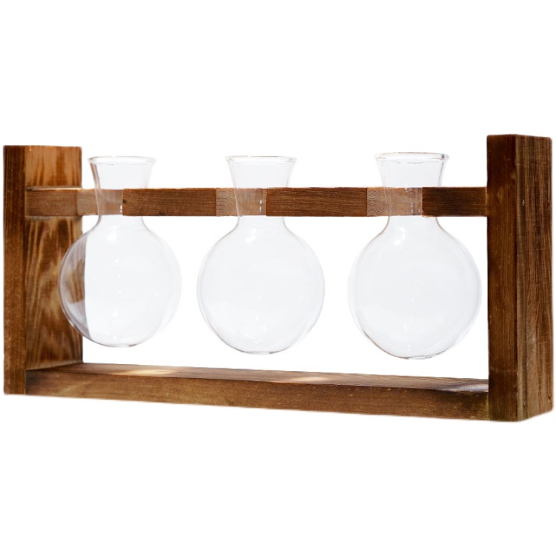 创意水培花瓶水养绿萝插花容器玻璃木艺花器桌面居家简约装饰摆件