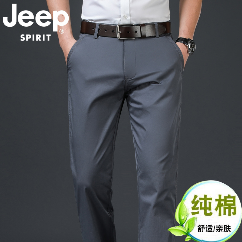 JEEP吉普2025新款正品薄款纯棉休闲裤男装春秋冬军绿战地直筒长裤
