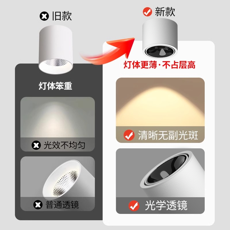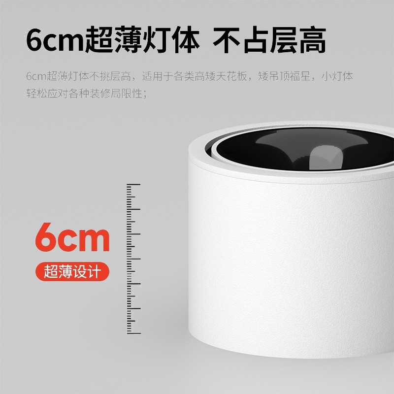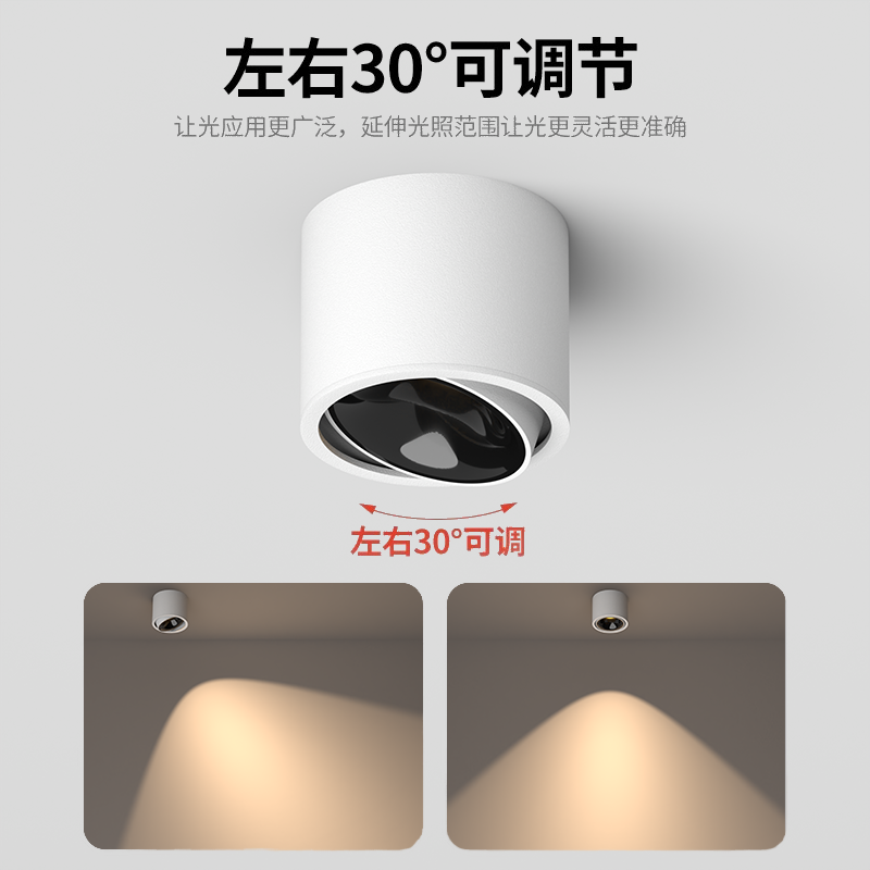 超薄明装射灯可调角度小山丘客厅过道吸顶天花灯智能防眩led筒灯