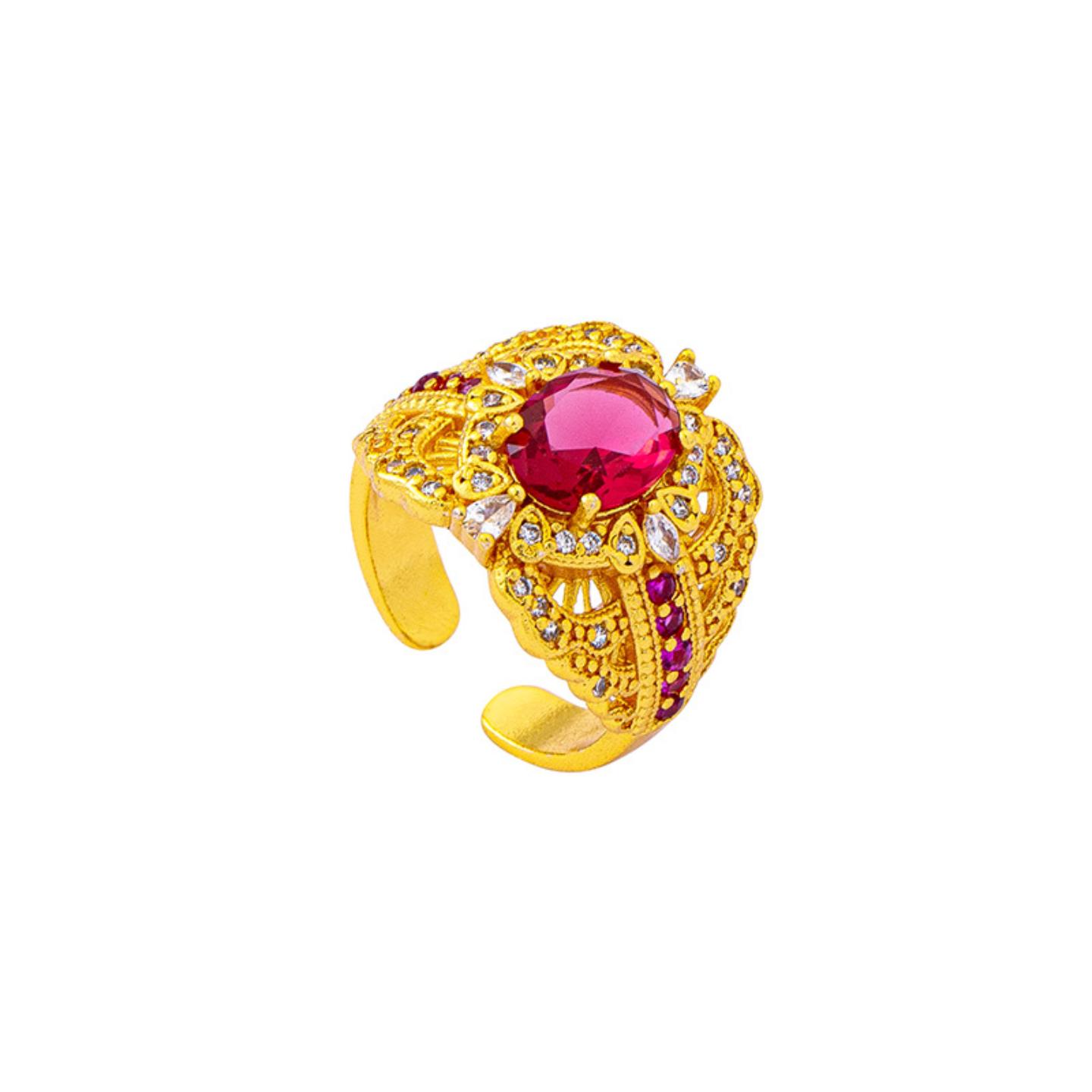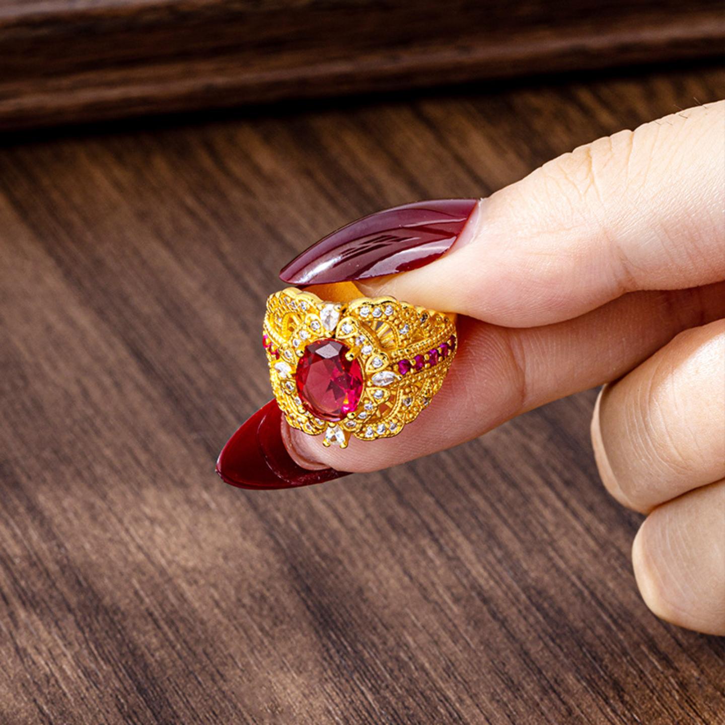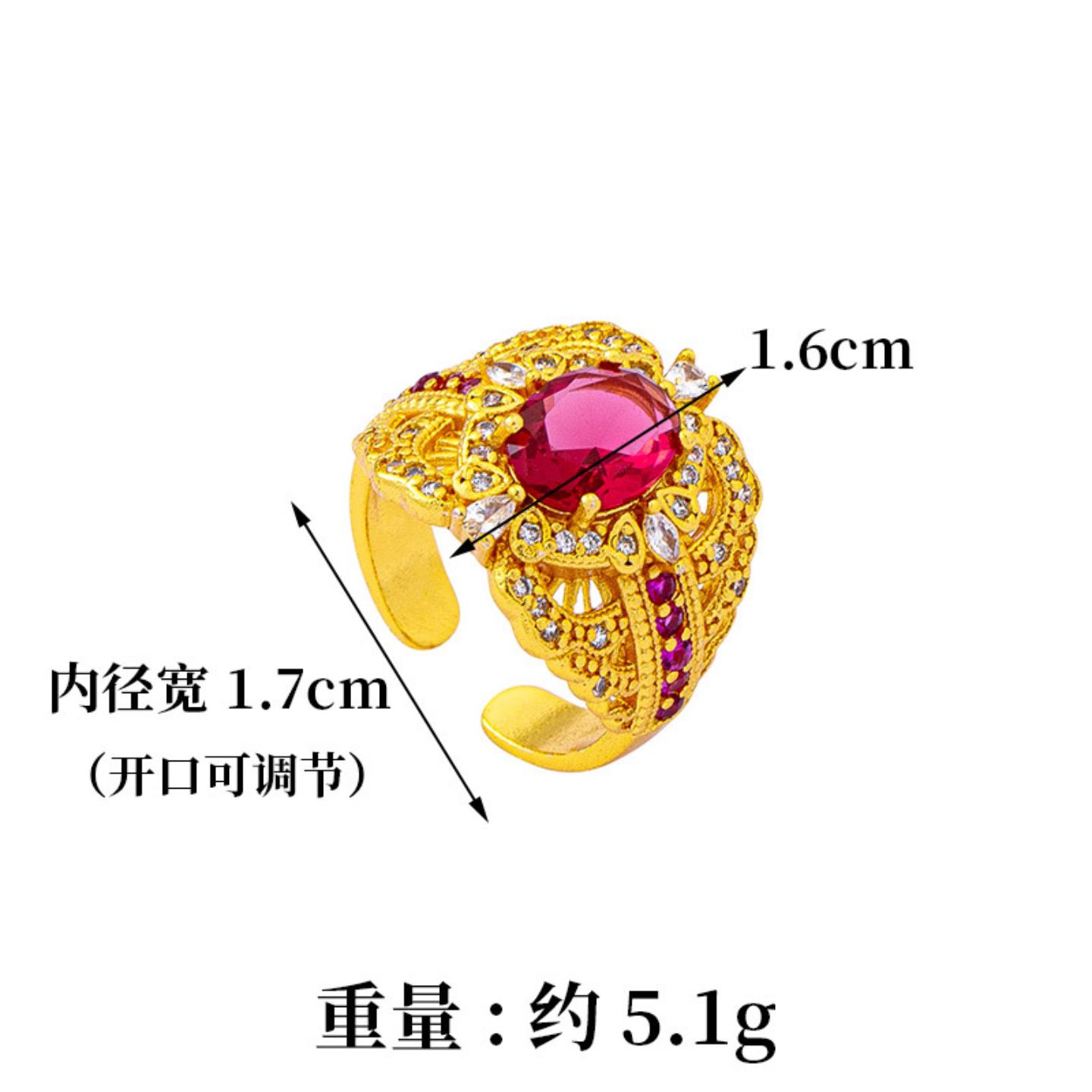 轻奢风仿鸽子蛋开口戒指女越南沙金镶锆食指戒铜镀金久不掉色饰品