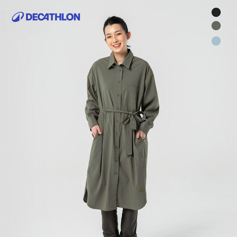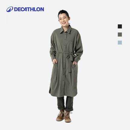 迪卡侬官方运动风衣薄款百搭长款女装衬衫连衣裙休闲外套春秋ODT2