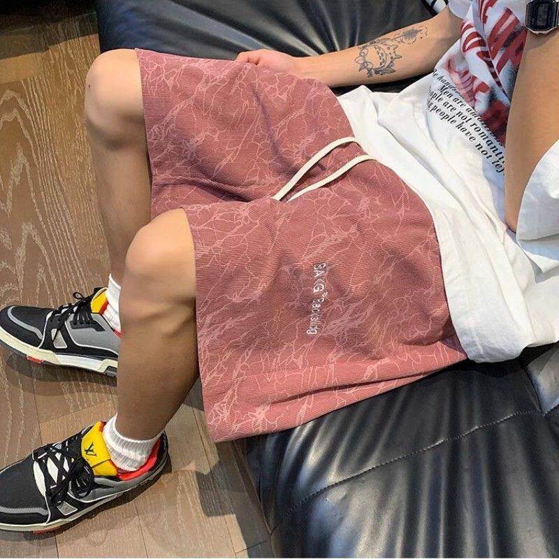 扎染刺绣休闲短裤男士夏季薄款美式工装外穿五分裤子男款字母中裤