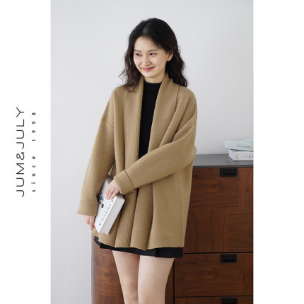 嘉茱莉中长款针织外套女2025秋季新款宽松针织上衣V领毛衣毛衫