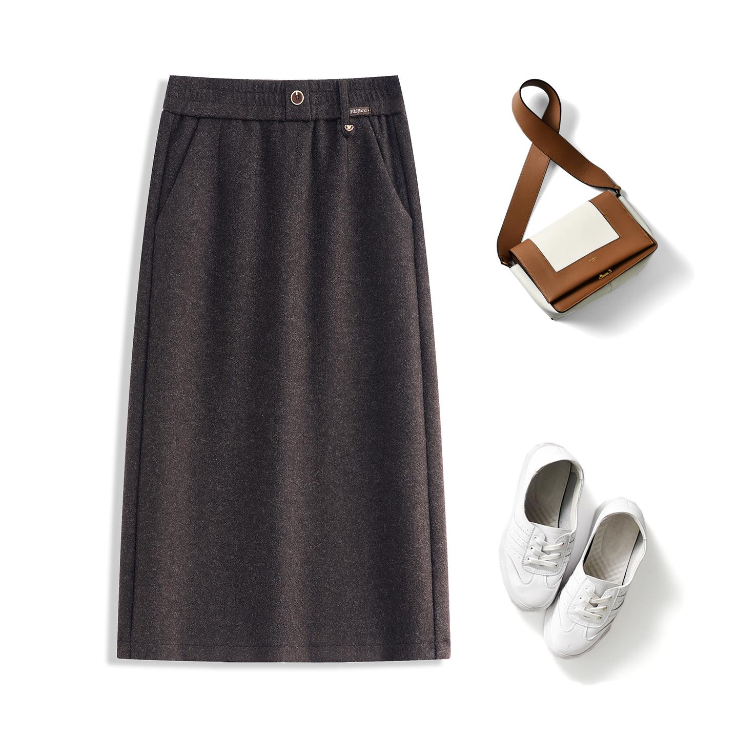 极简休闲羊毛呢半身裙女秋季新款2025高腰显瘦A字百搭时尚中长款