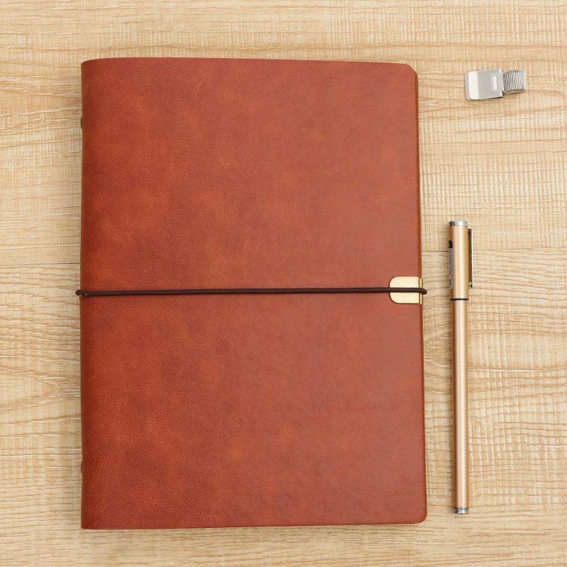 a5活页笔记本商务 o旅行本点阵方格空白6孔 软皮面绑带记事本定制