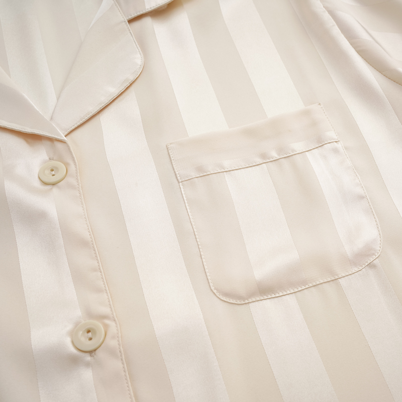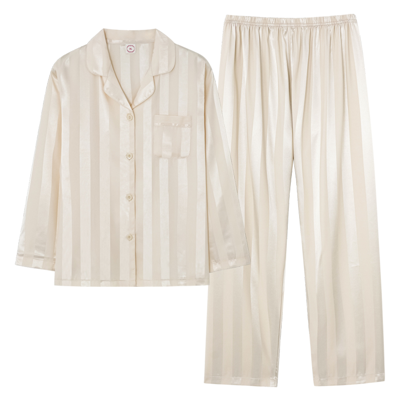 芝桃鸟2026年新款冰丝睡衣女款春秋季条纹仿真丝绸家居服套装秋天