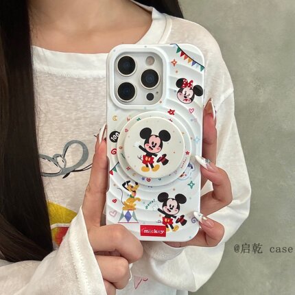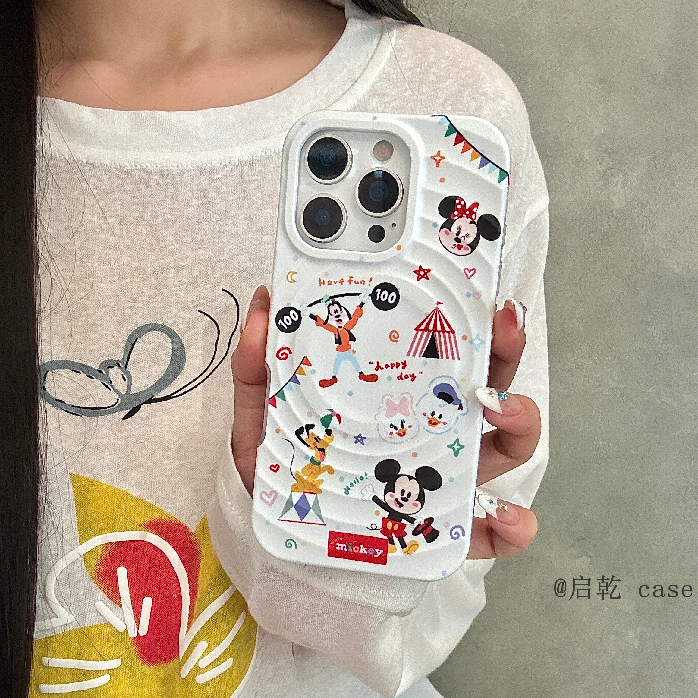 启乾 磁吸波漾壳米奇米妮带支架iPhone17/16手机壳适用苹果15/14promax硬壳可爱卡通少女心小众治愈系新款