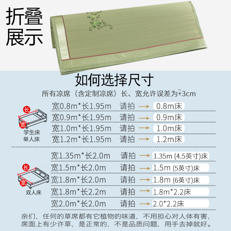 指尖舞草席1.8m床单人学生宿舍夏季凉席三件套1.5双人1.2米藤席