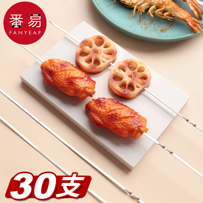 烧烤签B1pq801-不锈钢烧烤签子家用针钎子烧烤用具铁烤针签字扁签