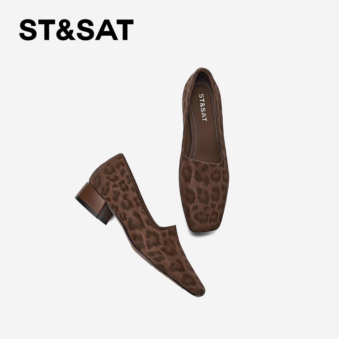 St&Sat/星期六粗跟浅口单鞋中跟方头通勤复古玛丽珍鞋气质女鞋