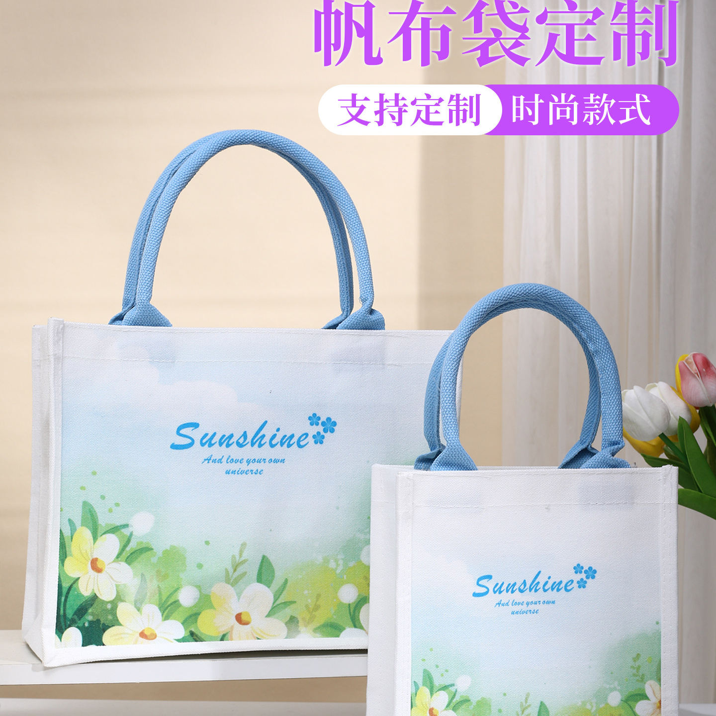 小清新花语通勤帆布包时尚伴手礼品袋手提帆布袋定制logo环保袋
