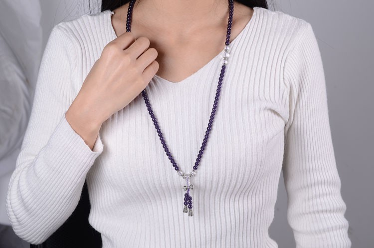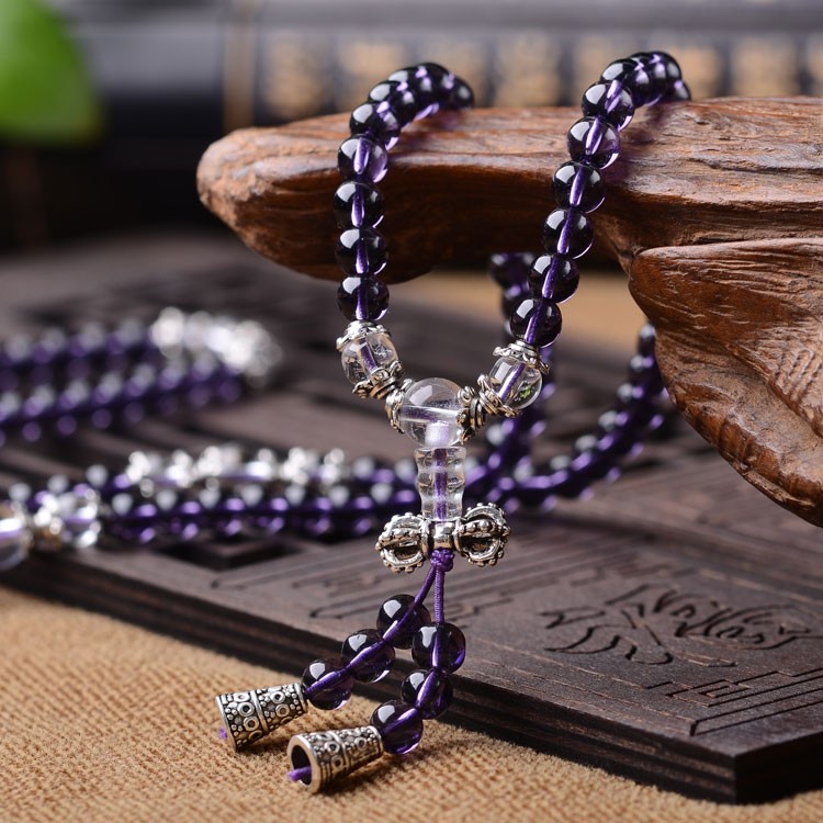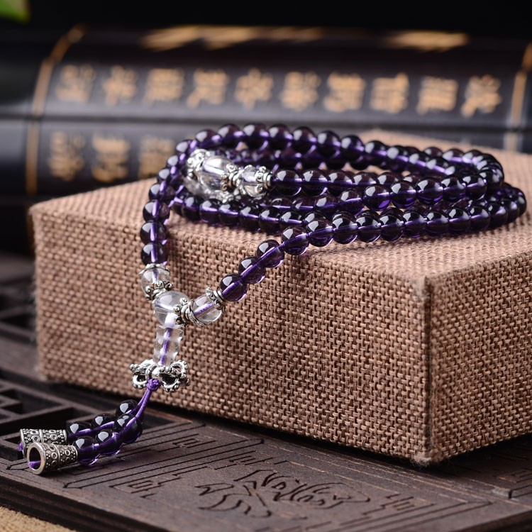 韩版天然正品紫水晶三通多圈手链女士款情侣108颗多层手串本命年