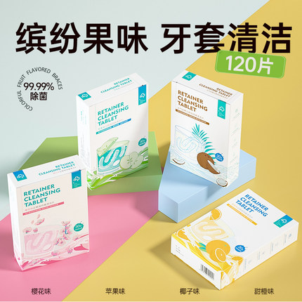 雅克菱保持器清洁片120片四味正畸泡腾片洗假牙隐形牙套清洁神器