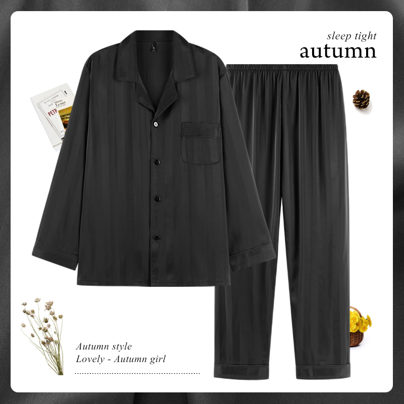 薄款冰丝睡衣男春秋款夏季家居服长袖男士条纹秋款男生四季款大码
