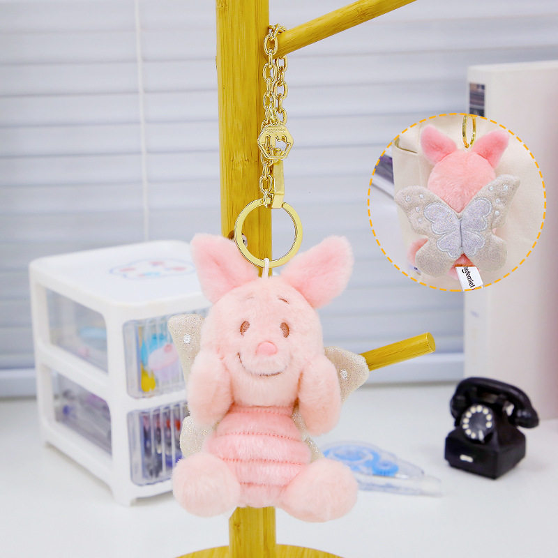 正版迪士尼公仔草莓熊挂件钥匙扣史迪仔奇奇毛绒玩具背包挂饰包包