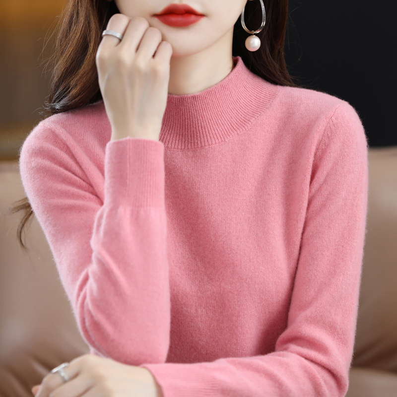 鄂尔多斯市羊绒衫2024秋冬新款100纯羊毛打底衫半高领宽松毛衣女