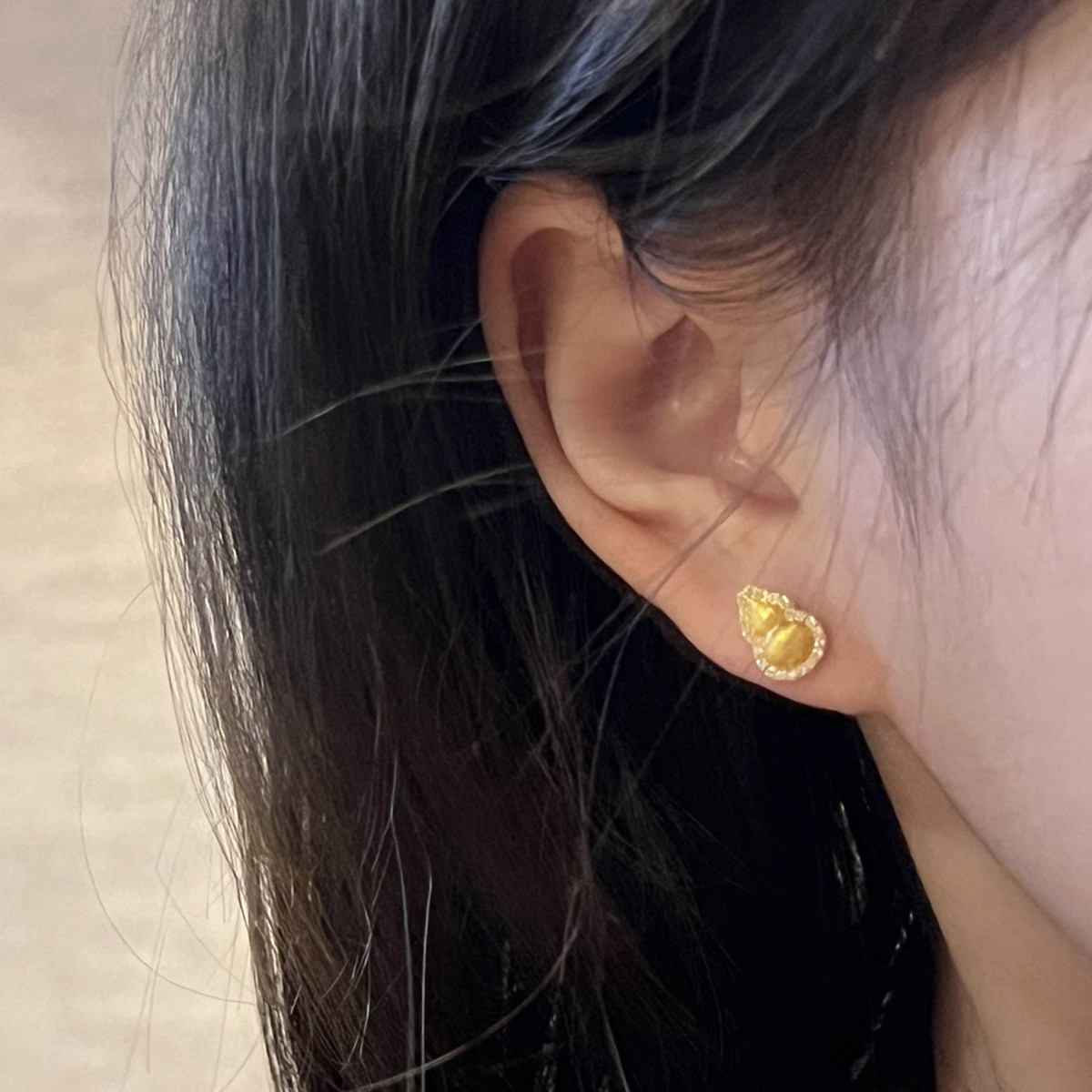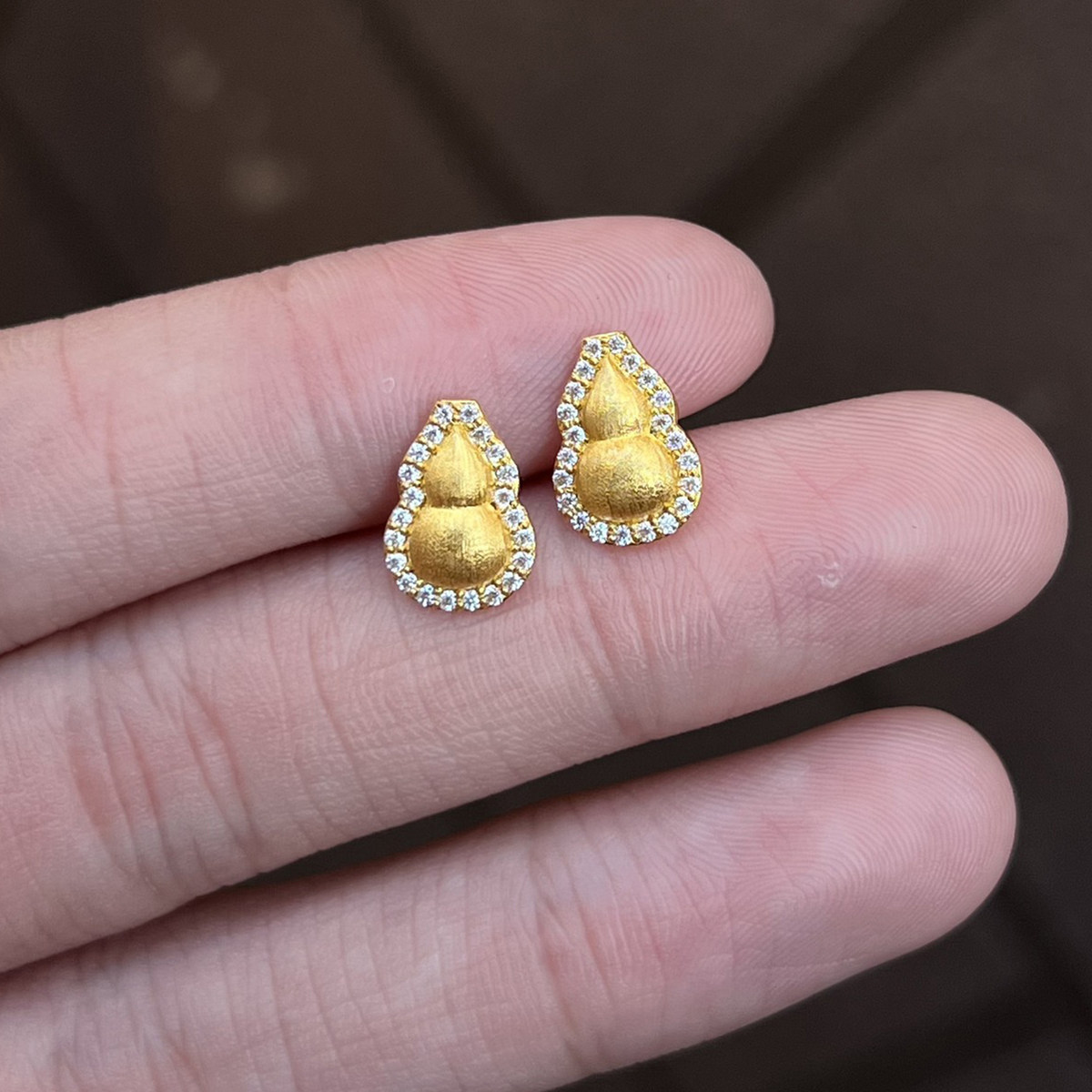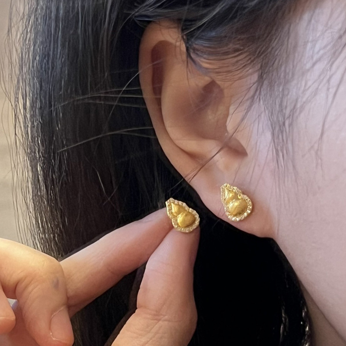 吉盟珠宝古法黄金点钻耳钉女款999足金耳饰拉丝小葫芦国潮新中式
