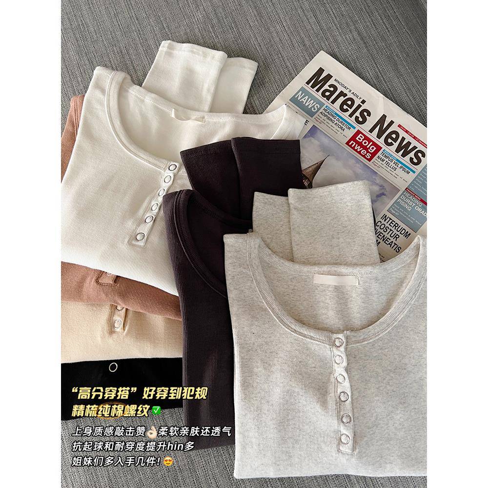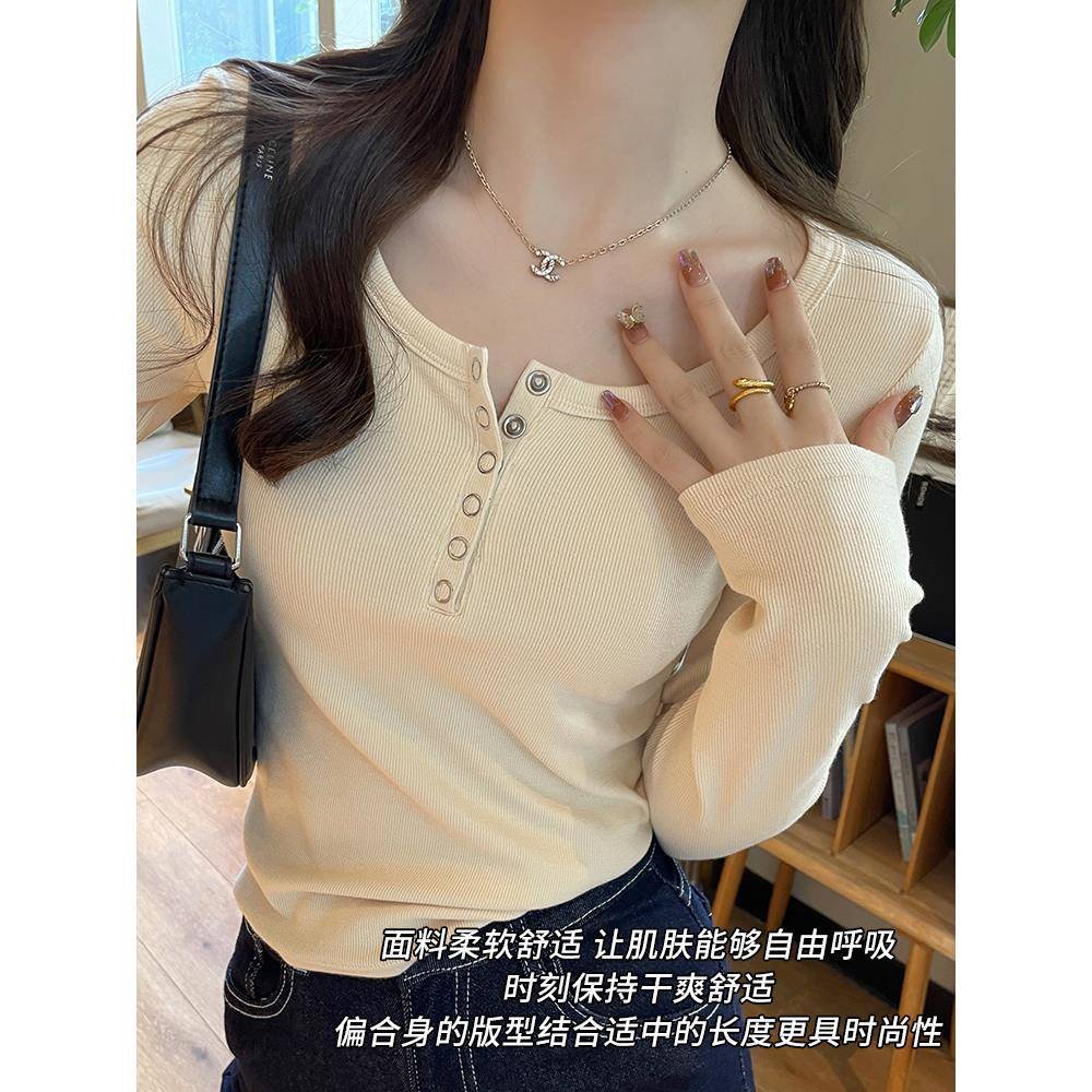 春秋打底衫女内搭2025新款螺纹紧身显瘦上衣修身白色低领长袖t恤