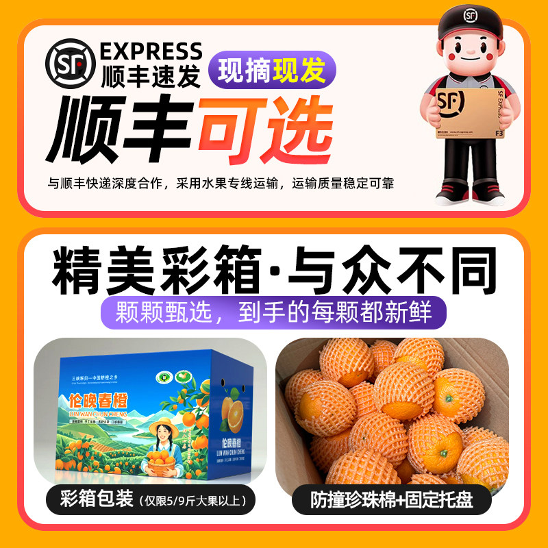 伦晚脐橙湖北秭归春橙当季整箱橙子新鲜10斤大果手剥甜橙榨汁水果