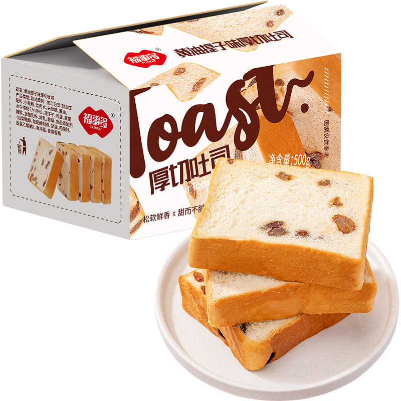 包邮福事多黄油提子味厚切吐司500g营养早餐整箱代餐饱腹零食礼盒