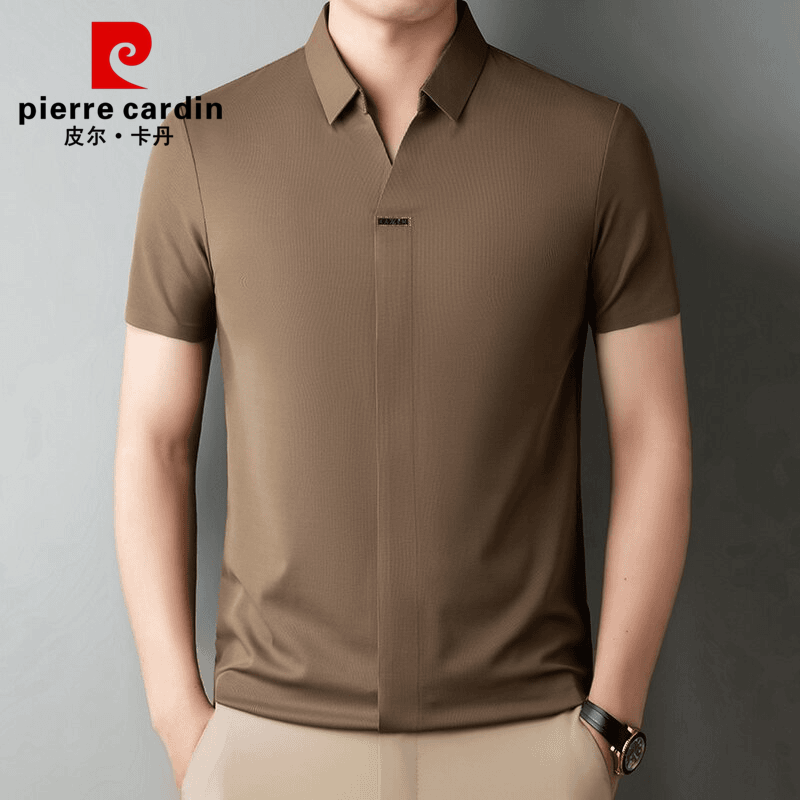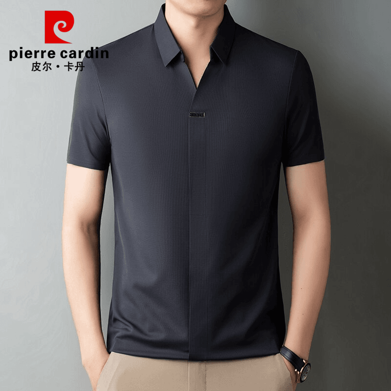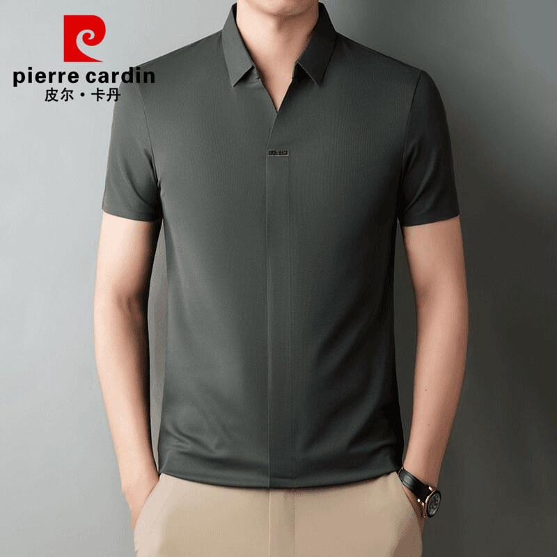皮尔卡丹高档男士桑蚕丝短袖T恤夏季薄款无痕冰丝速干翻领polo衫