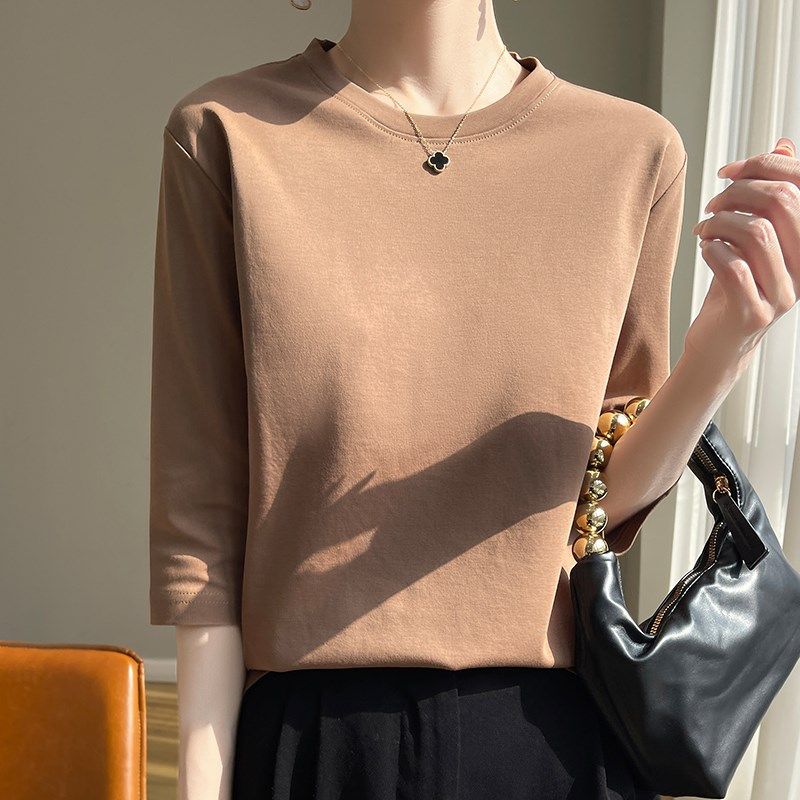 中袖上衣女七分袖高端纯棉2024新款宽松夏天西装内搭薄款短袖t恤